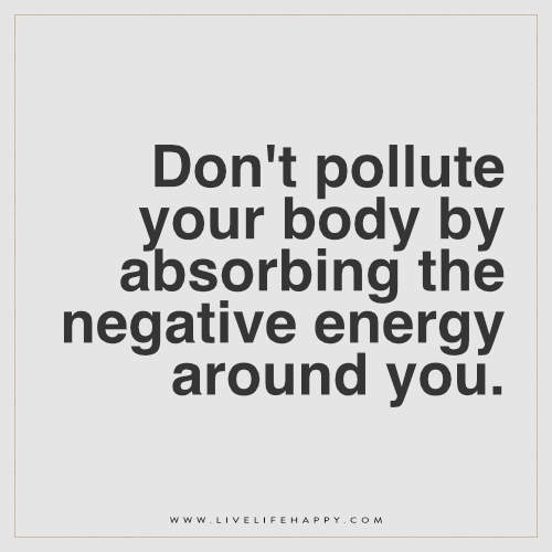 Don’t Pollute Your Body by Absorbing July 18, 2016 By LLH Leave a Comment Deep Life Quote: Don’t pollute your body by absorbing the negative energy around you. – Unknown
