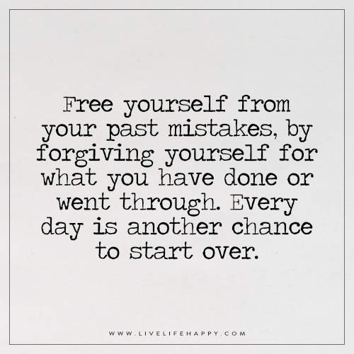 Free Yourself from Your past Mistakes September 10, 2016 By LLH Leave a Comment Deep Life Quote: Free yourself from your past mistakes, by forgiving yourself for what you have done or went through. Every day is another chance to start over. – Unknown