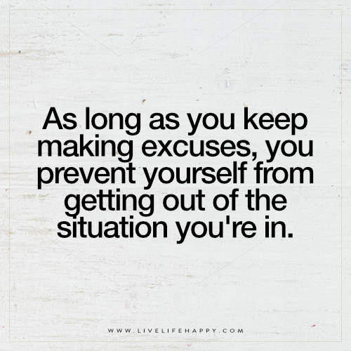 “As long as you keep making excuses, you prevent yourself from getting out of the situation you’re in.” – Author Unknown