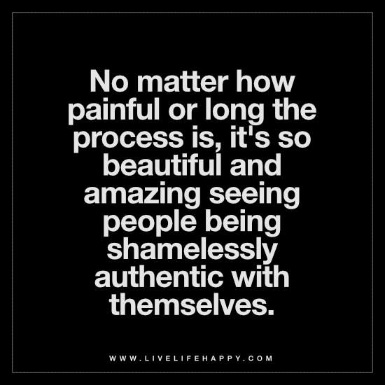 Deep Life Quote: No matter how painful or long the process is, it’s so beautiful and amazing seeing people being shamelessly authentic with themselves. – Unknown