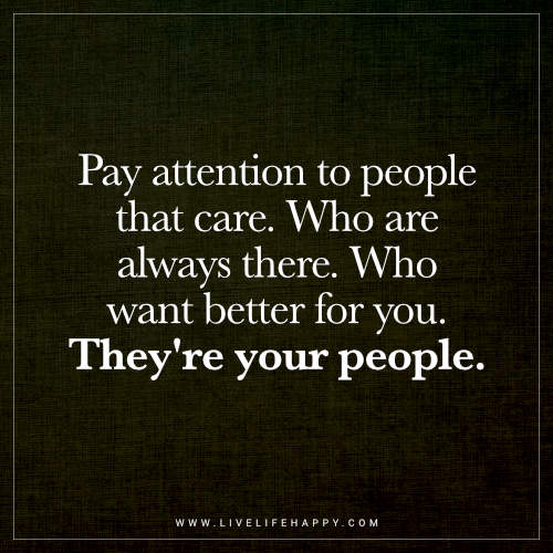 “Pay attention to people who care, who are always there, who want better for you. They’re your people.” – Unknown
