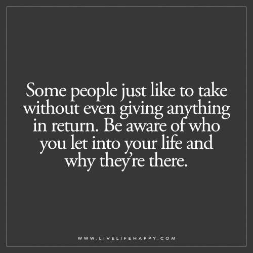 Some People Just Like to Take Without October 19, 2016 By LLH Leave a Comment Deep Life Quote: Some people just like to take without even giving anything in return. Be aware of who you let into your life and why they’re there. – Unknown