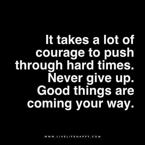 It Takes a Ton of Courage to Push Through August 8, 2016 By LLH Leave a Comment Deep Life Quote: It takes a ton of courage to push through hard times. Don’t give up. Good things are coming your way. – LLH