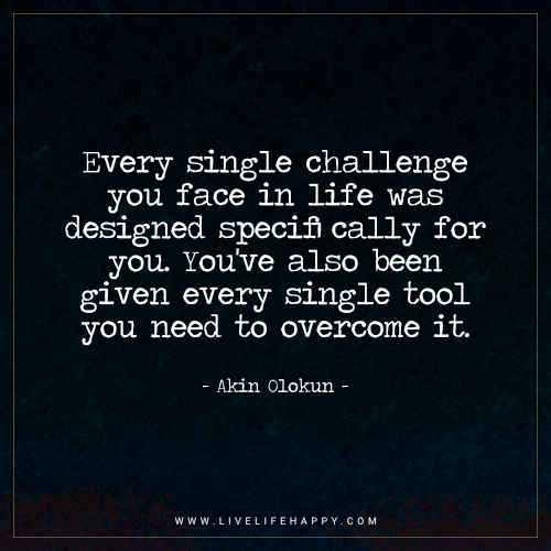 “Every single challenge you face in life was designed specifically for you. You’ve also been given every single tool you need to overcome it.” – Akin Olokun